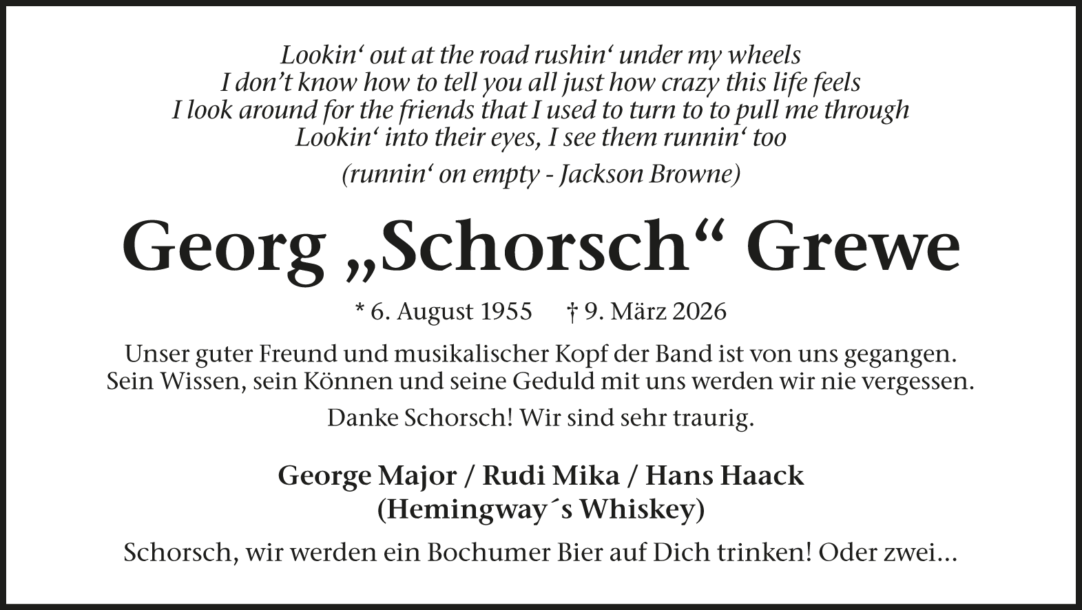 Er hat Musikerziehung an der Pädagogischen Hochschule in Dortmund studiert. Für seine komplexen musikalischen Kenntnisse der Rock- und Popmusik ist er bekannt, deshalb kennt er auch Akkorde, die andere nicht kennen. Georgs große Leidenschaft, neben der Musik, ist und bleibt der "ruhmreiche" VFL Bochum.