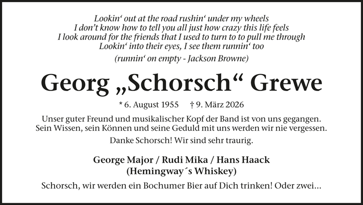 Er hat Musikerziehung an der Pädagogischen Hochschule in Dortmund studiert. Für seine komplexen musikalischen Kenntnisse der Rock- und Popmusik ist er bekannt, deshalb kennt er auch Akkorde, die andere nicht kennen. Georgs große Leidenschaft, neben der Musik, ist und bleibt der "ruhmreiche" VFL Bochum.